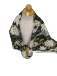 White Green Flowers on Black Canvas